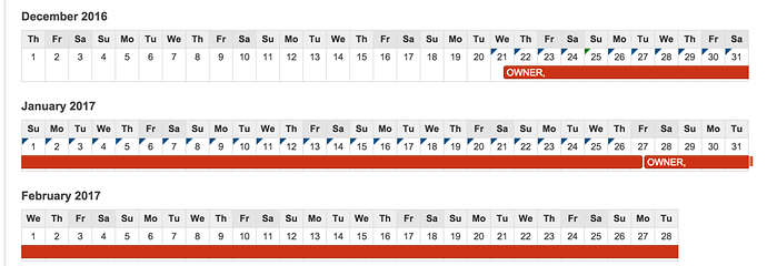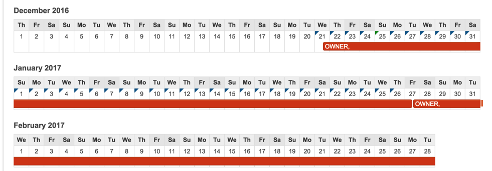 With regards to future dates, all you do is make a booking as the owner. This is done once you log in. As far as the calendar is then concerned, the room night is unavailable as it is booked. You need to do this if operating through other platforms that may not synchronise. No commission payable on these blocked out dates of course. What you end up with is a calendar which looks like the one below showing where my December dates are blocked out:
