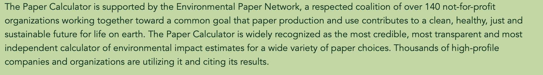 So what the article linked to a not-for-profit that linked to another not-for profit’s calculations that 'is widely considered as the most credible, most transparent and most independent calculator of environmental impact estimates for a wide variety of paper choices"?