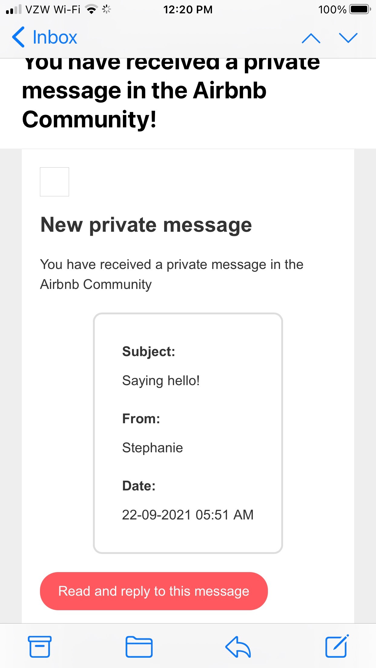 Need to see the message headers to tell, not the message itself All we can see is the message, not who it came from. If it appeared in the AirBnb Community site, I would assume it’s legit.
