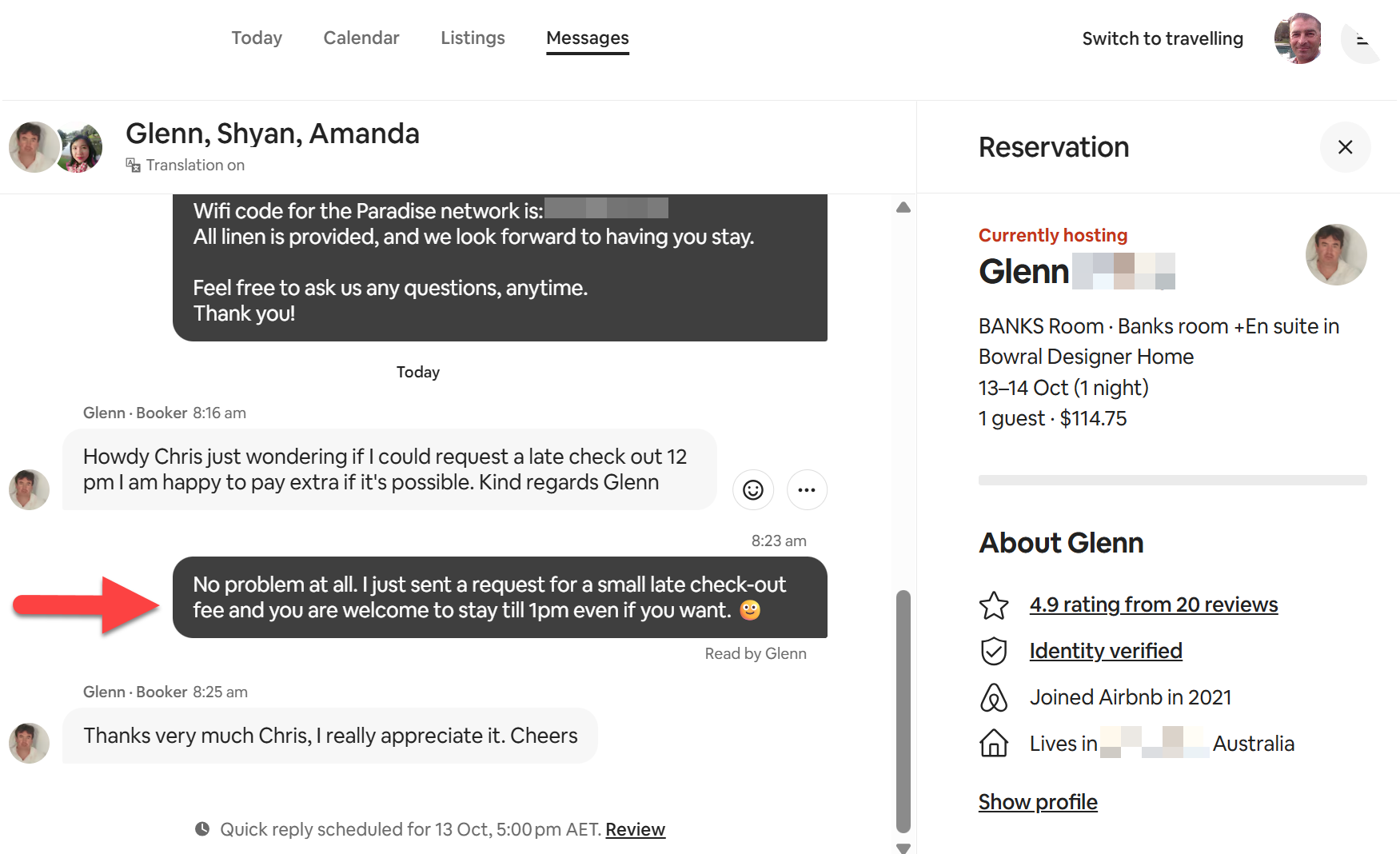 I know this arrangement may not work for all hosts. I certainly don’t want to suggest anyone ‘should’ consider this. But would you? have you? Do you charge for late check-out? or do you just say ‘No, sorry - we can’t accommodate you?’