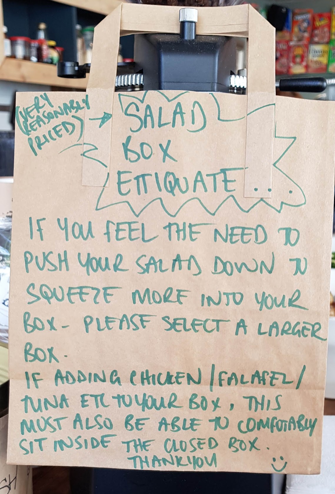 For so many reasons this seemed petty, and would put me off actually buying one of their (delicious looking) salads.