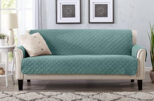 The sofa and loveseat are a lighter shade of teal. The protectors are the exact same color. I have taken the living room photo for my listing and not included the protectors. I might think about putting them on if guests have small children? Not sure.